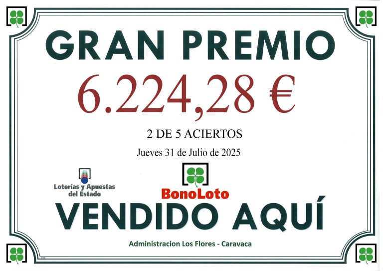 Enhorabuena al afortunado que se ha hecho con el premio de la bonoloto del martes 20 de Junio.